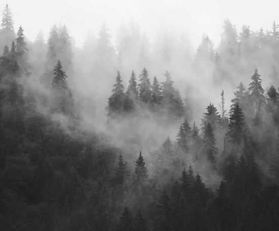 Papier peint forêt brumeuse verte