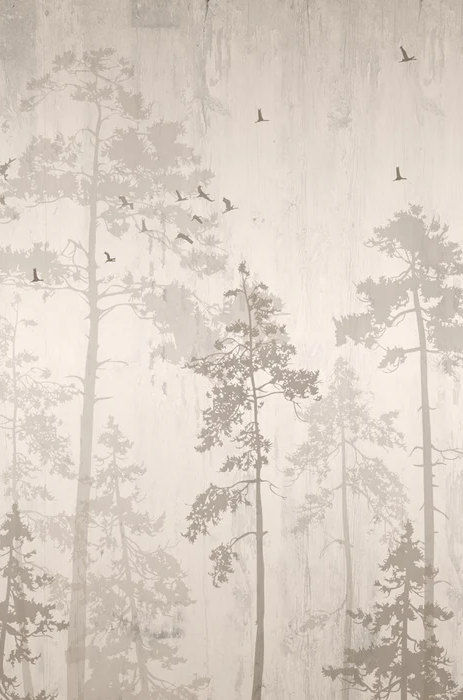 Papier peint forêt bouleau gris