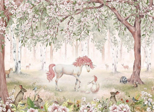 Papier peint licorne féerique rose