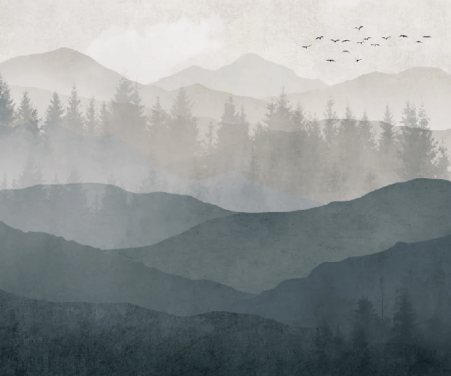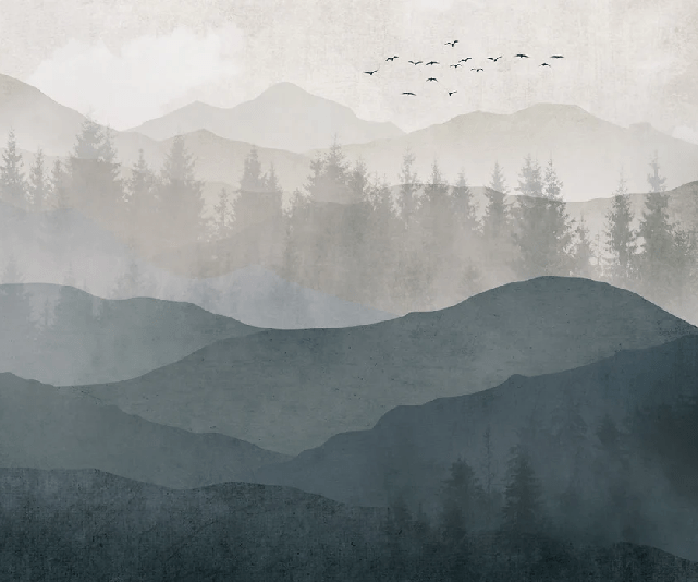 Papier peint panoramique chalet en montagne, mural concept, tendance