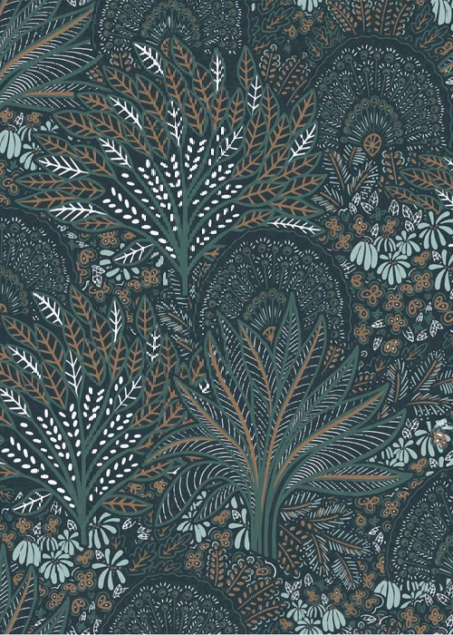 Papier peint wc rayure rétro vert jungle