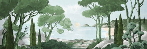 Papier peint balade dans les calanques vert