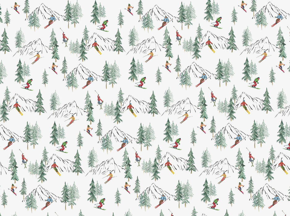 Partez à la découverte du sport du montagne avec notre papier peint Alpine glisse. Représentatif du sport d'hiver avec ses skieurs et ses sapins, ce papier peint panoramique trouvera sa place dans toutes les pièces de votre maison, mais aussi dans votre établissement ou chalet.