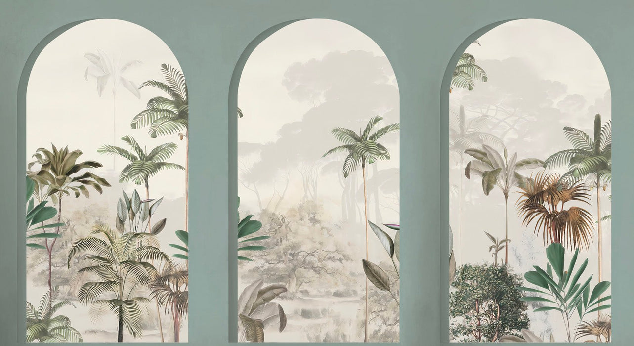 Les arches majestueuses semblent inviter à une exploration au milieu d'une nature luxuriante et verdoyante. Les feuillages exubérants et les plantes tropicales peuplent chaque recoin, ajoutant une touche de fraîcheur et de vie à votre décoration murale. Laissez-vous transporter dans un univers où la verdure luxuriante crée une atmosphère apaisante et inspirante.