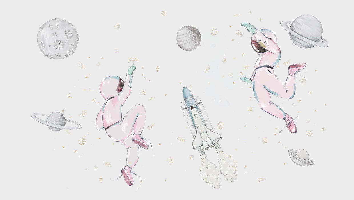 Décorez avec le papier peint astronautes dans l'espace rose la chambre de votre enfant, de votre bébé, ou encore la salle de jeux ! Ce papier peint panoramique fascine nos bambins, qui rêvent un jour de partir dans l'espace et de devenir astronaute. Alors pourquoi ne pas lui en mettre plein les yeux avec cette tapisserie panoramique ? Grâce à votre nouvelle décoration murale, les histoires et ses rêves seront encore plus passionnants, et son imagination grandira à vue d'œil. Le papier peint panoramique peut aider votre enfant à développer sa créativité.