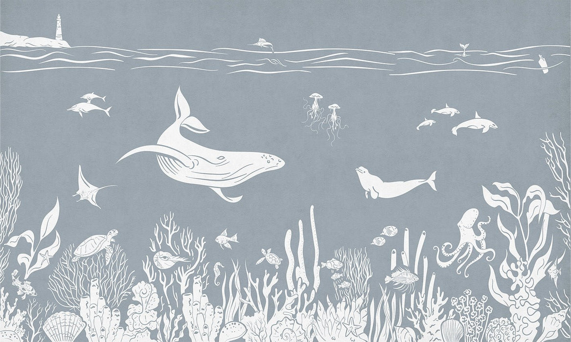 La chambre de votre bébé ou de votre enfant se transforme grâce à notre papier peint balade aquatique bleu. Ce papier peint bleu monochrome, à la couleur pastel, adoucit et apaise l'ambiance de la chambre de votre enfant. Idéal pour l'accompagnement et le développement de l'éveil de votre enfant, ce papier peint enfant animaux marins raconte de tendres histoires. Plongeons ensemble entre les dauphins, les baleines, les poissons et les coraux pour s'émerveiller et apprendre en s'amusant. Le bleu de ce papier peint est doux.