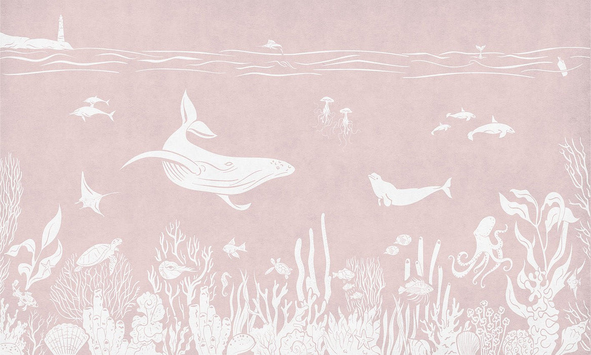 La chambre de votre bébé ou de votre enfant se transforme grâce à notre papier peint balade aquatique rose. Ce papier peint rose monochrome, à la couleur pastel, adoucit et apaise l'ambiance de la chambre de votre enfant. Idéal pour l'accompagnement et le développement de l'éveil de votre enfant, ce papier peint enfant animaux marins raconte de tendres histoires. Plongeons ensemble entre les dauphins, les baleines, les poissons et les coraux pour s'émerveiller et apprendre en s'amusant. Le rose de ce papier peint est doux.