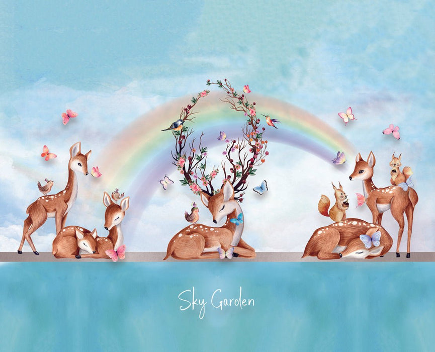 Papier peint chambre enfant douces biches arc en ciel
