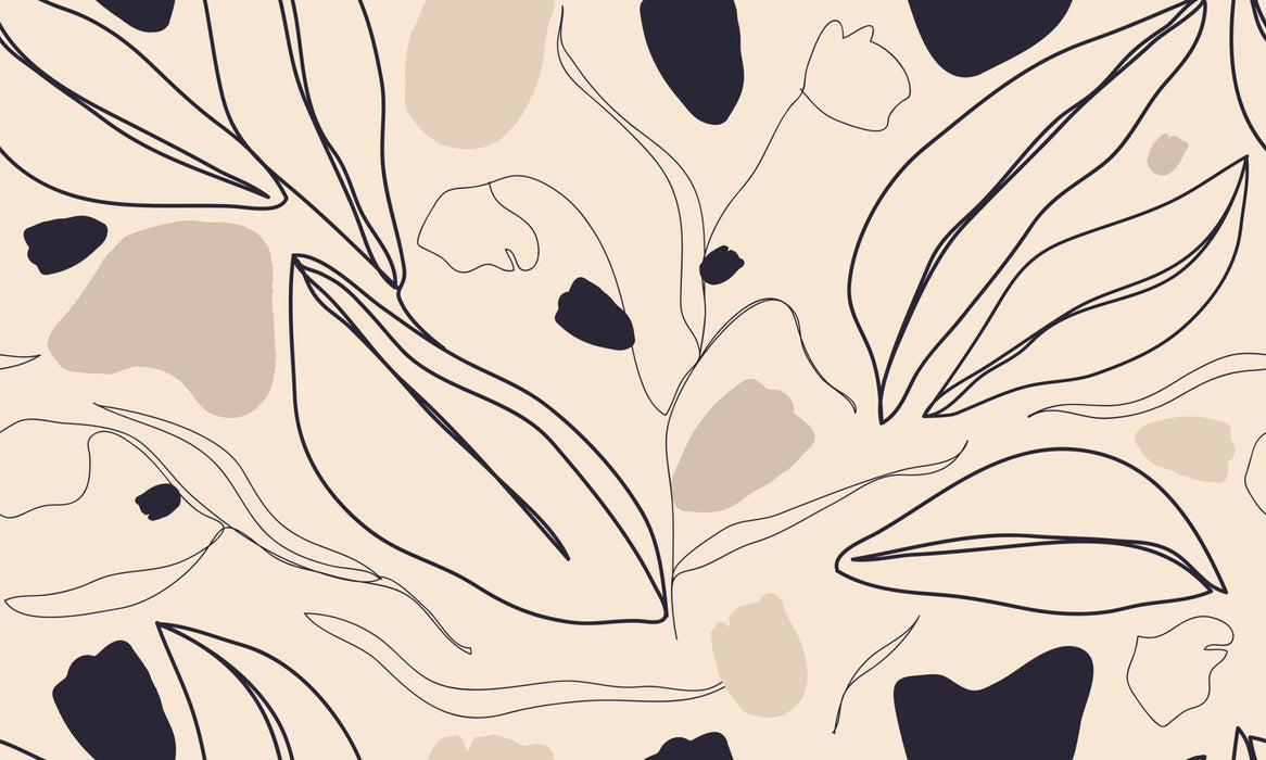 Son motif léger, dessiné en fines lignes noires, évoque des feuilles et pétales dans un style artistique et délicat. Les aplats de couleurs en tons nude, taupe et beige rosé créent une ambiance douce et naturelle, parfaite pour un intérieur apaisant et moderne.