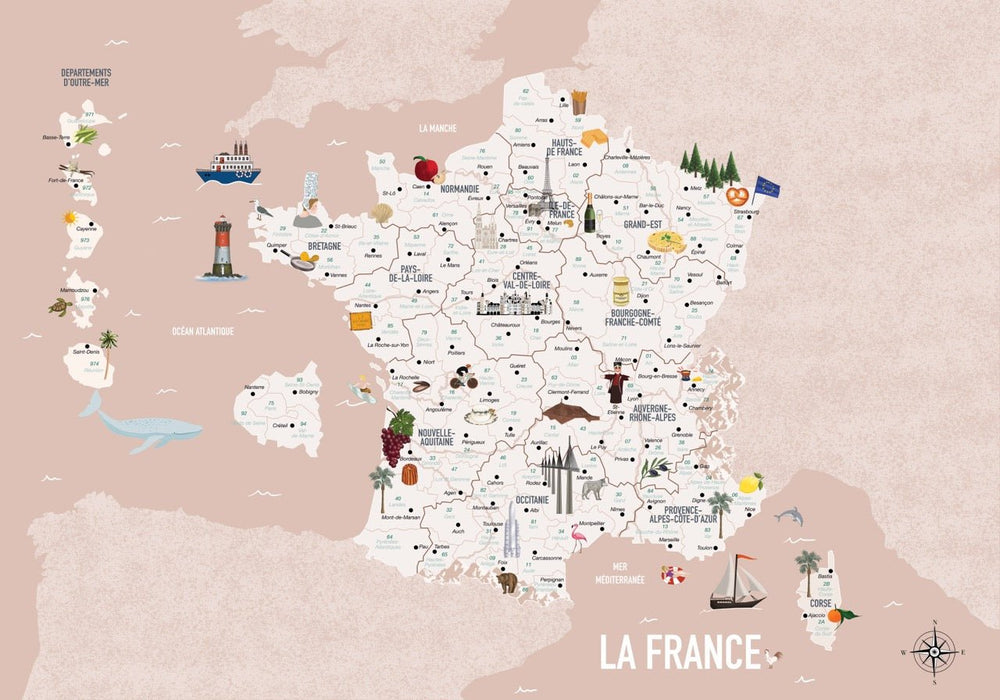 Transformez la chambre de votre enfant avec notre papier peint carte de France beige rosé, un choix élégant et éducatif pour une décoration murale unique. Ce papier peint illustre une magnifique carte de France dans des tons doux de beige et de rose, parfaits pour créer une ambiance chaleureuse et apaisante. Idéal pour les chambres d'enfant, il associe style et apprentissage en invitant les petits à explorer les régions françaises tout en ajoutant une touche moderne et tendance. Conçu avec des matériaux durables et respectueux de l'environnement, ce papier peint est facile à poser et résistant. Faites de la chambre de votre enfant un espace inspirant et raffiné avec ce papier peint carte de France aux teintes délicates. Parfait pour les parents recherchant une décoration originale et pédagogique