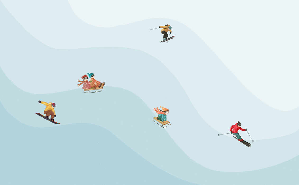 Papier peint enfant skieurs bleu