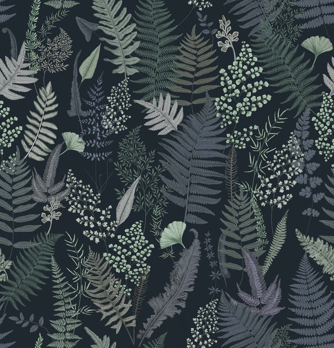Papier peint feuille dense bleu marine