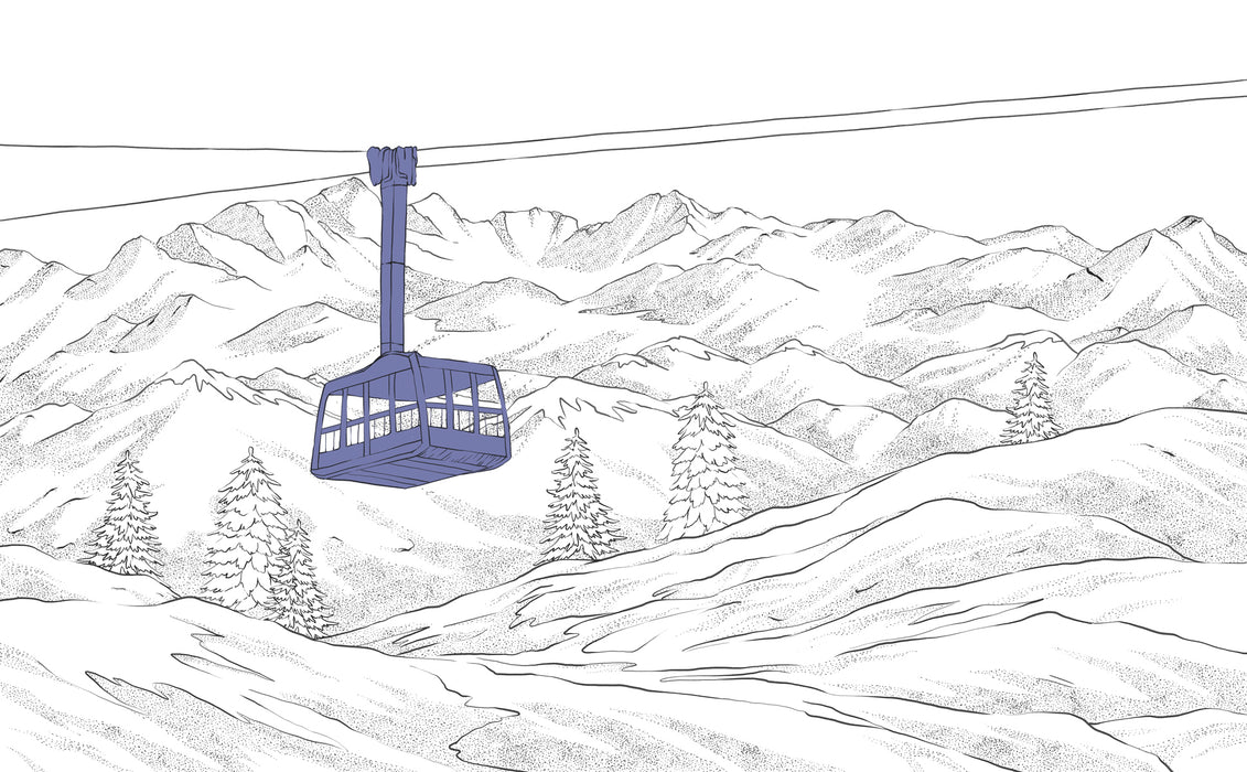 Ce design mural principalement noir et blanc, avec une télécabine bleu est composé de montagne, de neige, de sapins et d'une télécabine resplendissante. Prenez de la hauteur grâce à votre nouveau papier peint sur mesure. Optez pour une décoration originale avec un élément décoratif bleu.