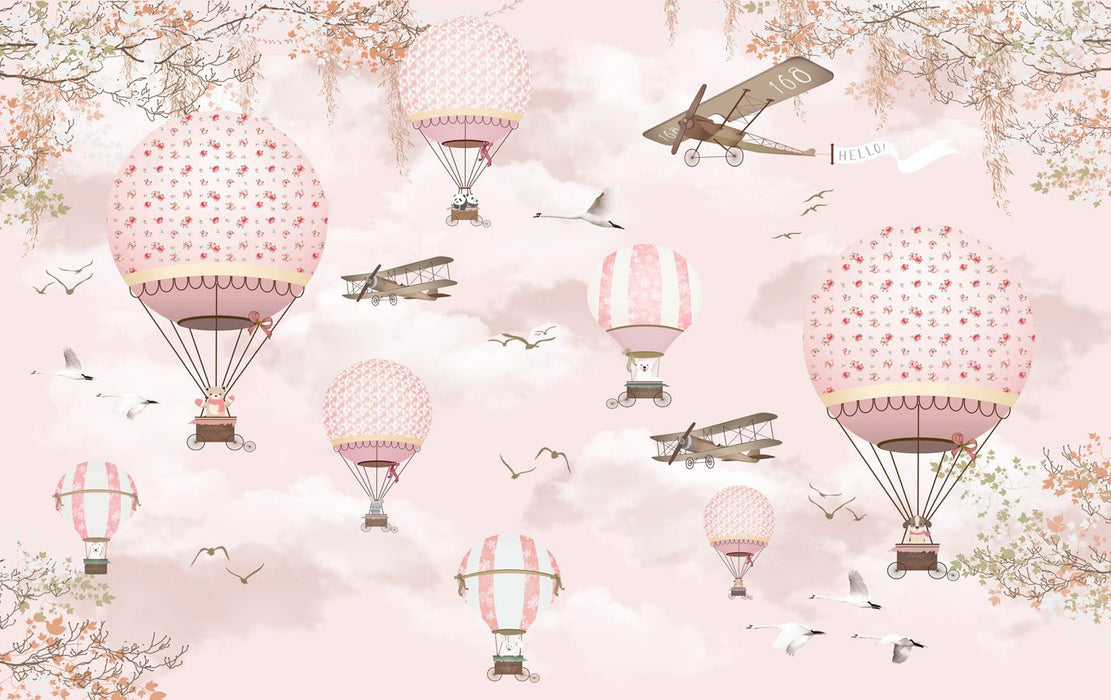 Notre papier peint les animaux en Montgolfière rose pêche, aux tons pastels va transporter votre enfant à la conquête du ciel. Un ensemble visuel superbe pour fasciner et divertir votre enfant. Créer facilement le monde imaginaire qu'il a toujours rêvé avec notre papier peint à vos mesures ! Coloris Bleu ou Rose pêche disponible. Achetez un papier peint en ligne pour la chambre de votre enfant, et créez une décoration sain et responsable.