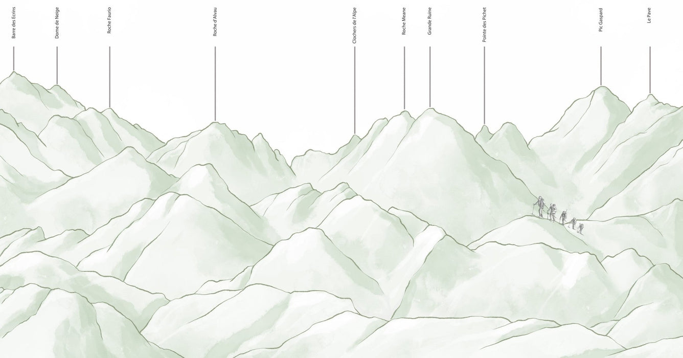 Changez votre décoration d'intérieur avec notre papier peint massif des Écrins vert. Cette fresque murale verte représente le massif des Écrins, autrefois nommé massif du Pelvoux. La couleur verte de ce papier peint donne de l'authenticité à votre décoration. Le massif des Écrins, lui, est niché dans les Alpes Françaises, et vous offre des paysages à couper le souffle et des merveilles naturelles captivantes. Sublimez vos murs avec les montagnes et les glaciers vertigineux de ce massif incontournable français en version verte. Ce papier peint charismatique vous fera fondre.