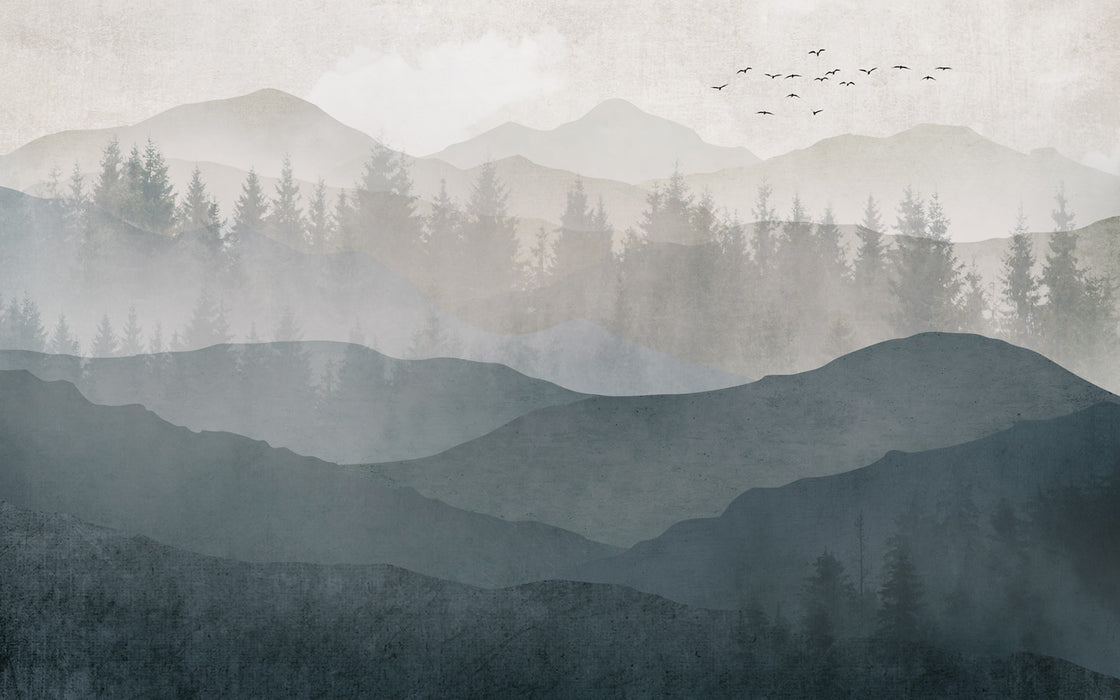 Collection papier peint panoramique nature forêt noir et blanc tendances