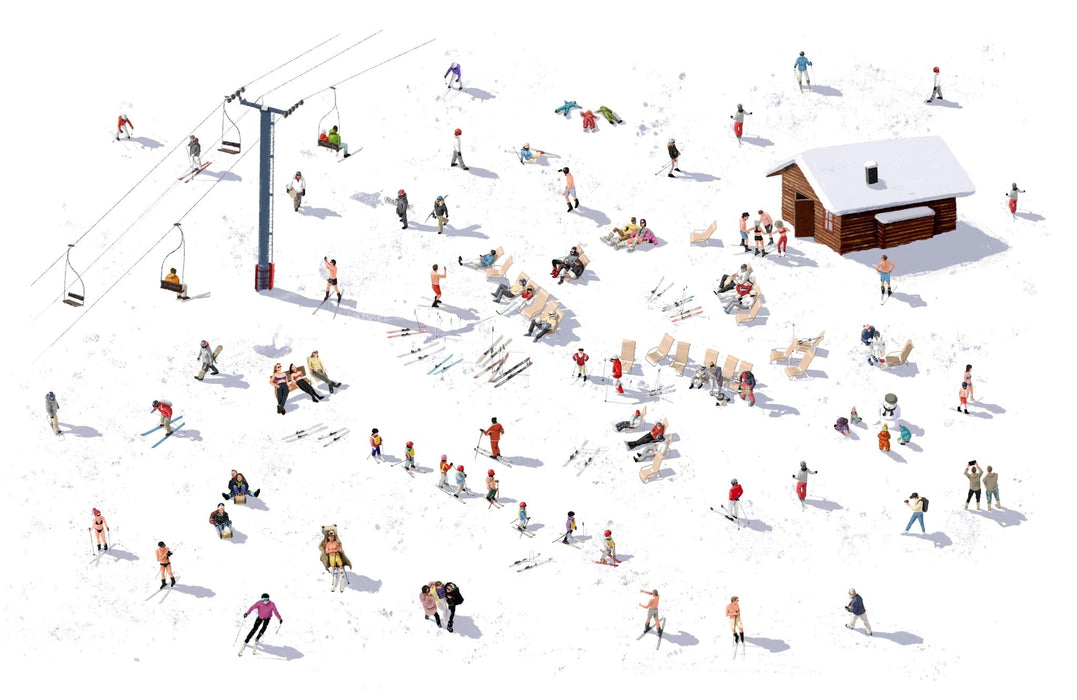 Invitez la magie des Alpes chez vous avec ce papier peint montagne illustré, parfait pour capturer l’essence joyeuse et nostalgique de l’après-ski. Entre skieurs qui bronzent, télécabines en mouvement, enfants à l’école de ski, descentes en luge et groupes d’amis partageant un chocolat chaud ou un moment au bar, chaque détail respire la convivialité et les souvenirs précieux des vacances en montagne.