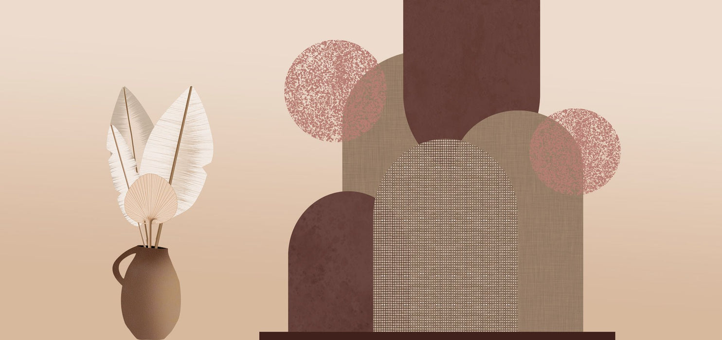 Plus besoin d'ajouter des objets déco, ce papier peint Art décoratif design sera la pièce maitresse de votre intérieur. Sur ce panneau mural, vous trouverez un vase céramique tendance, des feuilles de bananiers séchées, et des voutes très raffinées. Une création murale avec un effet matière rotin, peinture pantinée qui apporteront du cachet à votre ambiance. Habillez vos murs d'un papier peint panoramique qui rend votre intérieur sublime. Créer facilement un intérieur unique et digne d'un grand hôtel avec notre papier peint réalisé sur mesure. Une touche art déco design et graphique.