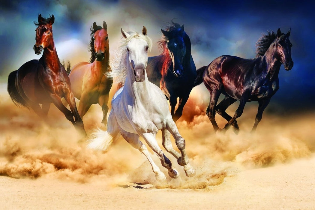 Entre féérie et réalisme, notre papier peint panoramique chevaux désert vous plongera dans l'univers de ces animaux tant adorés des petits et grands, qui accompagnaient autrefois les princes et les princesses. Les détails spectaculaires de ce décor mural XXL vous feront voyager dans le temps et l'espace et donnera de la profondeur à votre mur.