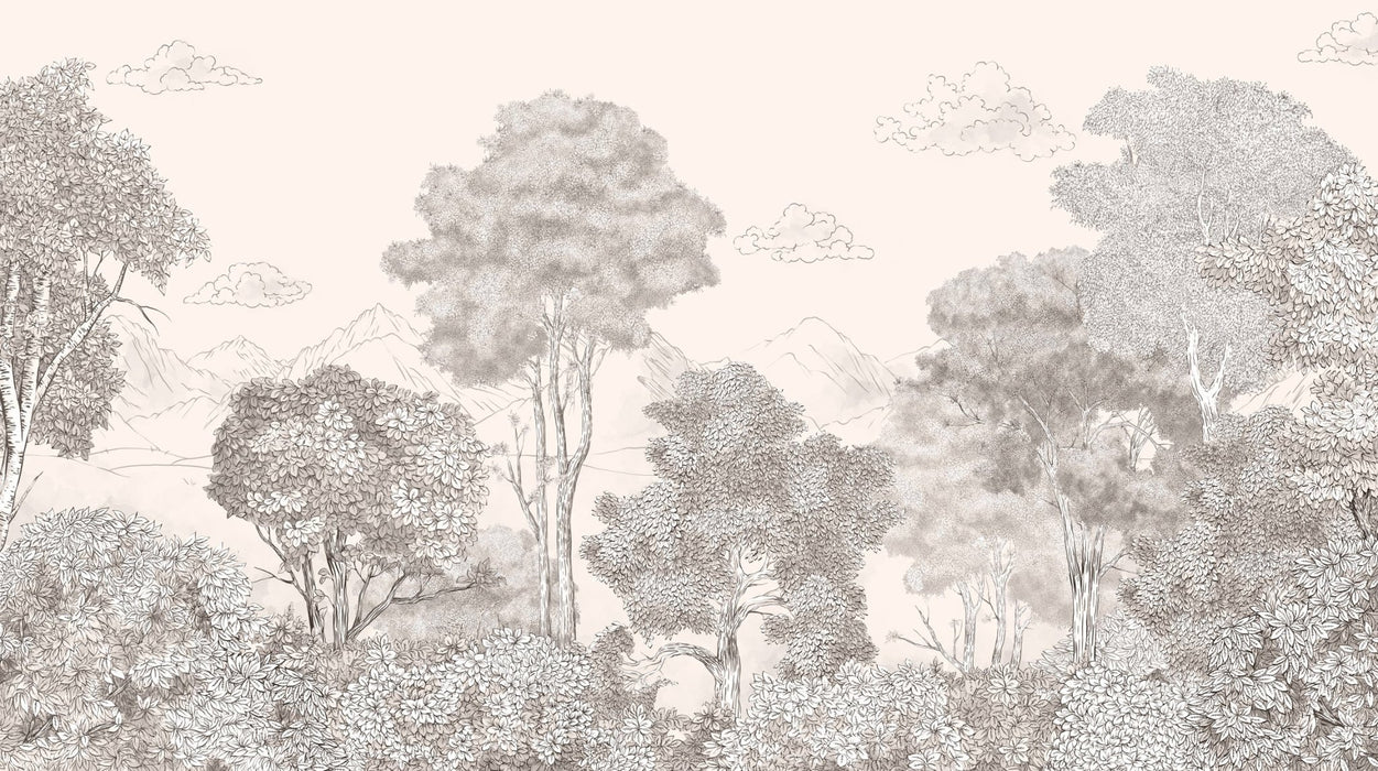 Papier peint panoramique Forêts et Monts Crayonnés Beige