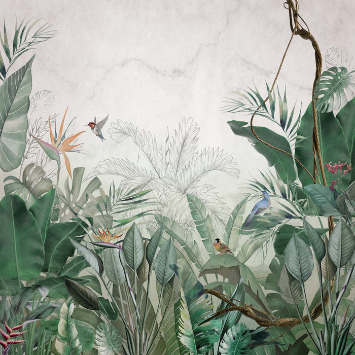 Plongez dans la nature avec notre papier peint panoramique jungle quintessence vert. Avec ses feuillages luxuriants et sa palette de verts vifs, ce papier peint apportera une ambiance exotique et relaxante à n'importe quelle pièce.