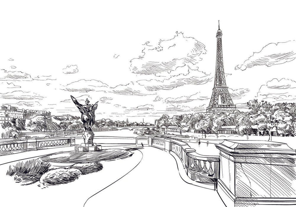 Plongez dans l'élégance intemporelle de Paris avec notre papier peint exquis, capturant la magie de la ville des lumières. Inspiré par les gravures artistiques en noir et blanc, chaque détail est méticuleusement dessiné à la main, offrant une esthétique authentique et raffinée. Ce papier peint évoque l'essence même de Paris, avec le majestueux Pont Bir Hakeim et la silhouette emblématique de la Tour Eiffel se dressant fièrement dans un panorama urbain enchanteur.