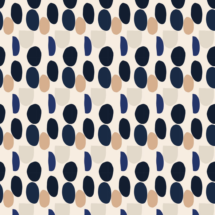 Posez un motif rétro rond sur vos murs, pour une touche rétro et contemporaine avec ce papier peint géométrique. Ses motifs de ronds, en bleu noir, bleu pétrole, beige, et terracotta, varient entre cercles pleins et demi-cercles, créant un design dynamique et moderne. Idéal pour un salon ou une chambre, ce papier peint abstrait ajoute profondeur et caractère à n'importe quelle pièce, tout en s'adaptant à différents styles de décoration.