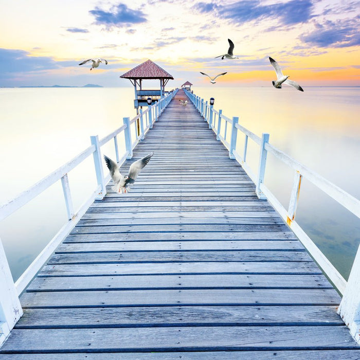 Papier peint trompe l’œil Ponton vue sur mer