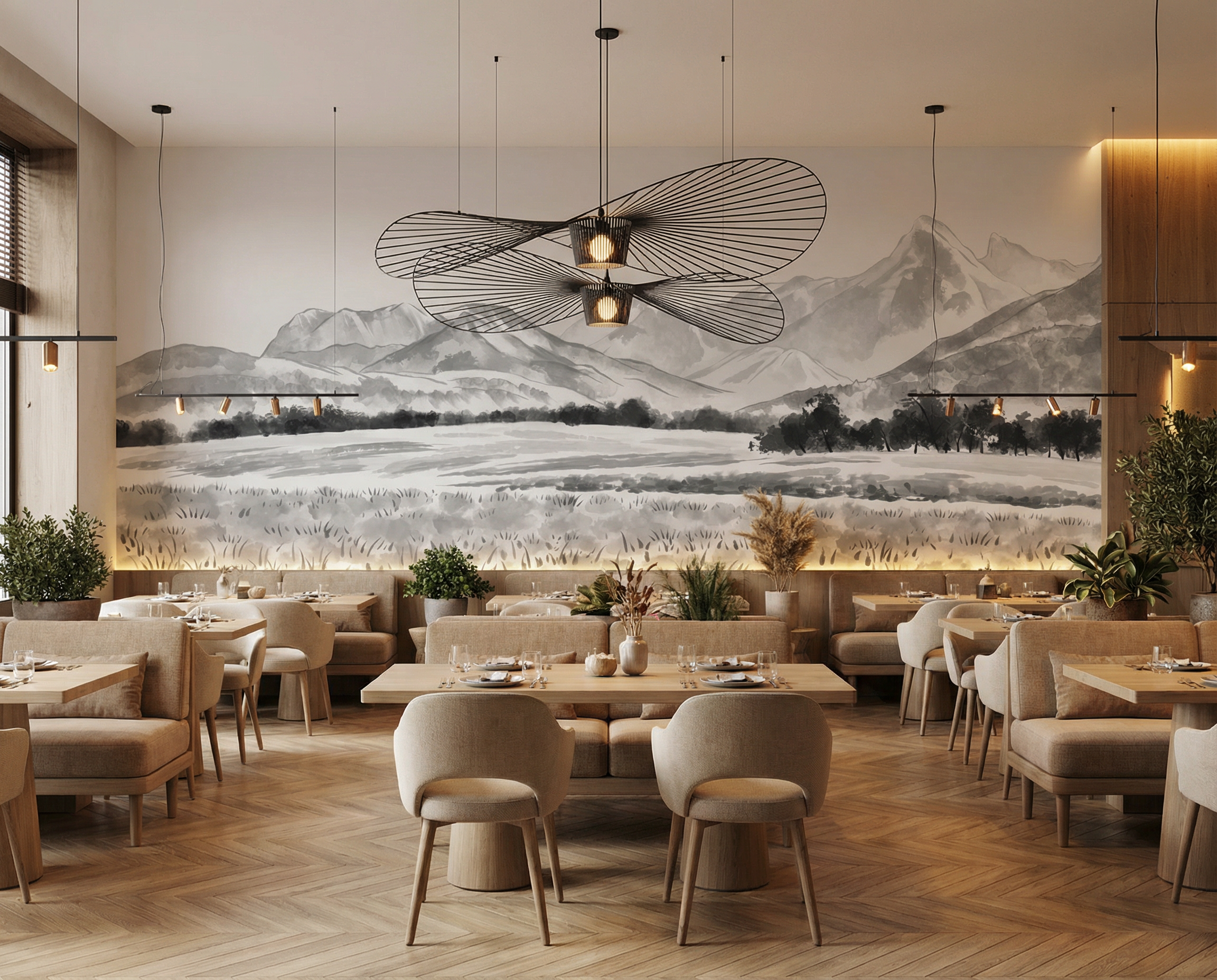 Idéal pour les particuliers en quête d’une décoration raffinée et contemplative, comme pour les hôtels, chalets, résidences de prestige et projets architecturaux, ce papier peint crée une atmosphère apaisante, minérale et élégante, typique des paysages alpins suisses et savoyards.