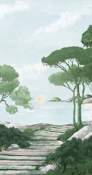 Papier peint balade dans les calanques vert