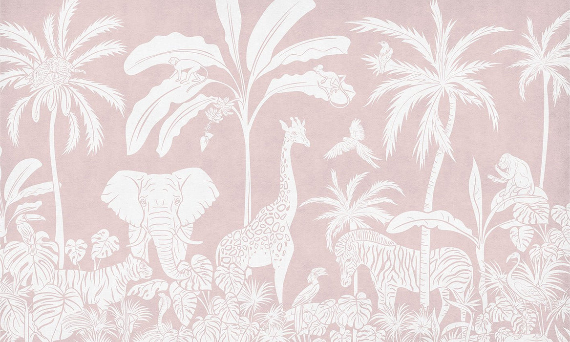 Papier peint enfant safari monochrome rose