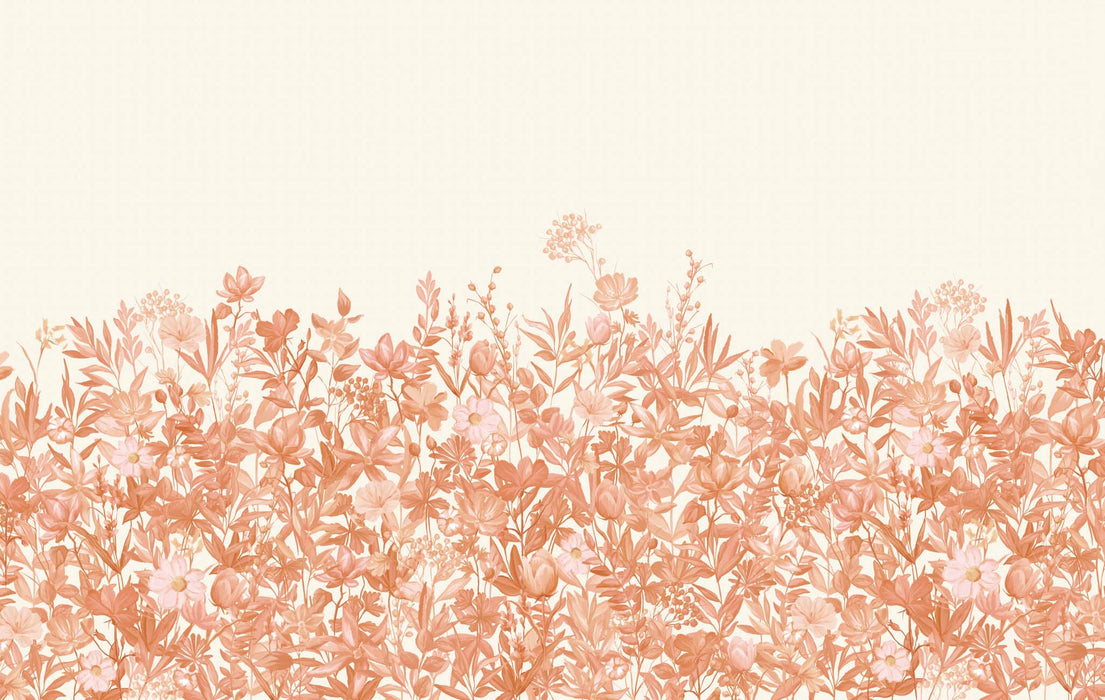Papier peint fleurs au pinceau terracotta