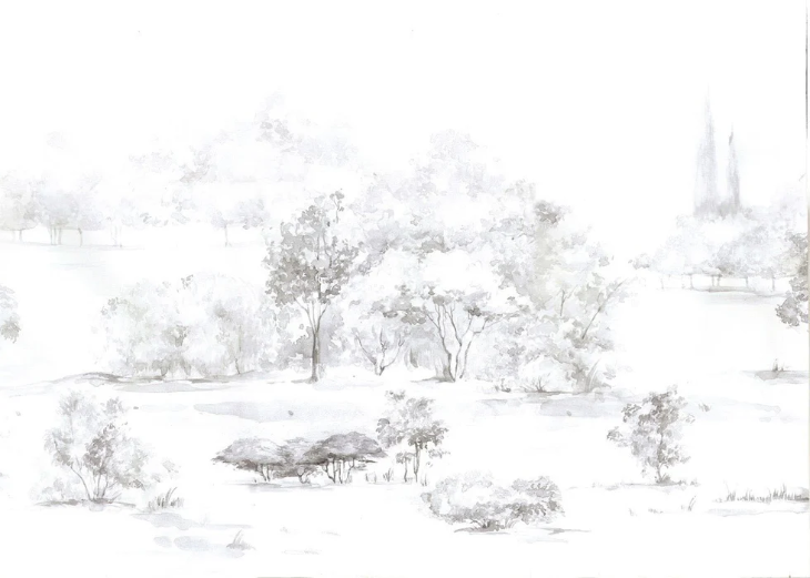 Papier peint forêt de pin aquarelle