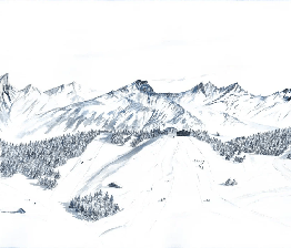 Papier peint montagne Megève – Fresque artistique peinte à la main