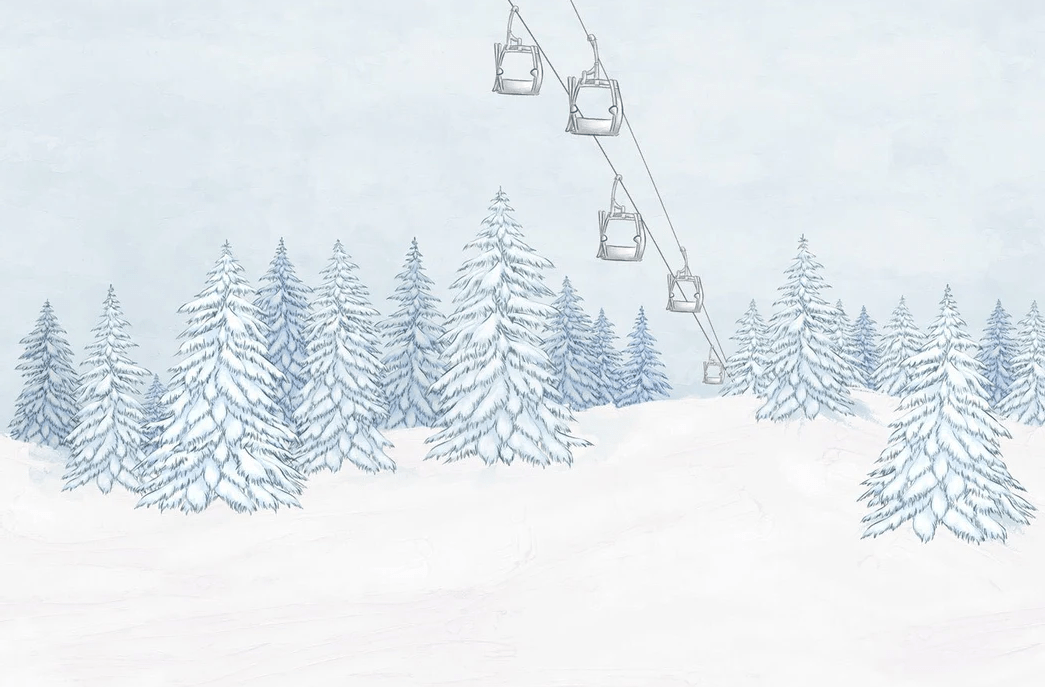 Papier peint montagnes télécabine bleu