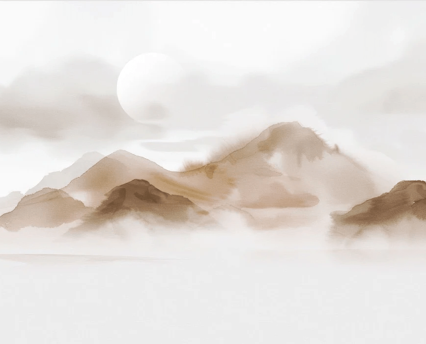 Papier peint montagnes voilées – Lueur sépia