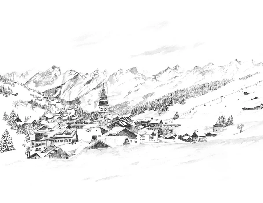 Papier peint panoramique La Clusaz en peinture - Noir et blanc