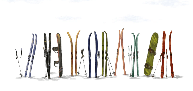 Papier peint panoramique skis colorés