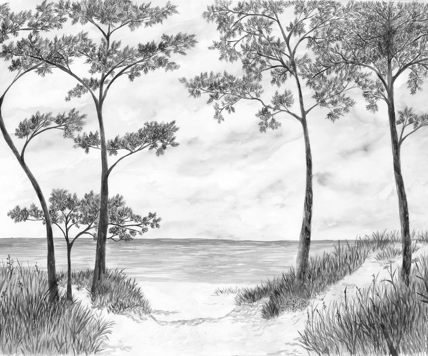Papier peint Pins maritimes et dunes - Noir et blanc