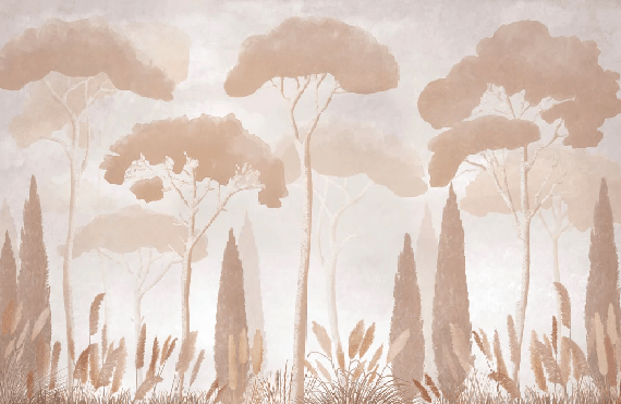 Papier peint sépia cyprès pins