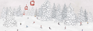 Papier peint télécabine skieurs colorés